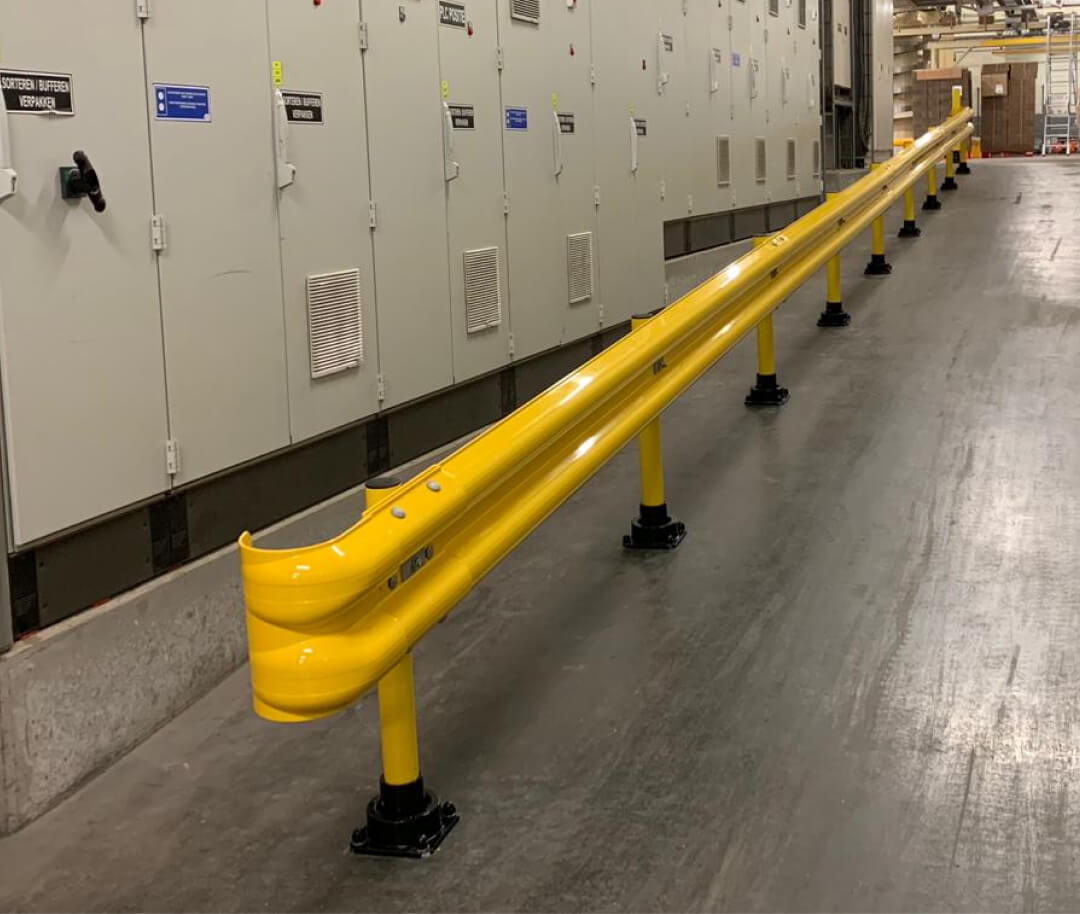 Osłony regałów z pochłanialnością energii uderzeń